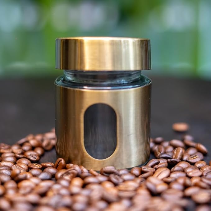 Mini Canister | 125 ML Capacity | Stainless Steel and Glass |Airtight Mini Coffee Canister