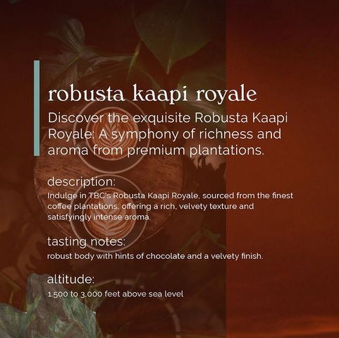 Experience the bold intensity of Robusta Kaapi Royale, a premium selection of 100% Robusta beans known for their strong body, deep aroma, and rich crema. Sourced from the finest plantations, these beans offer a high caffeine kick, making them perfect for those who love a full-bodied, intense coffee experience.